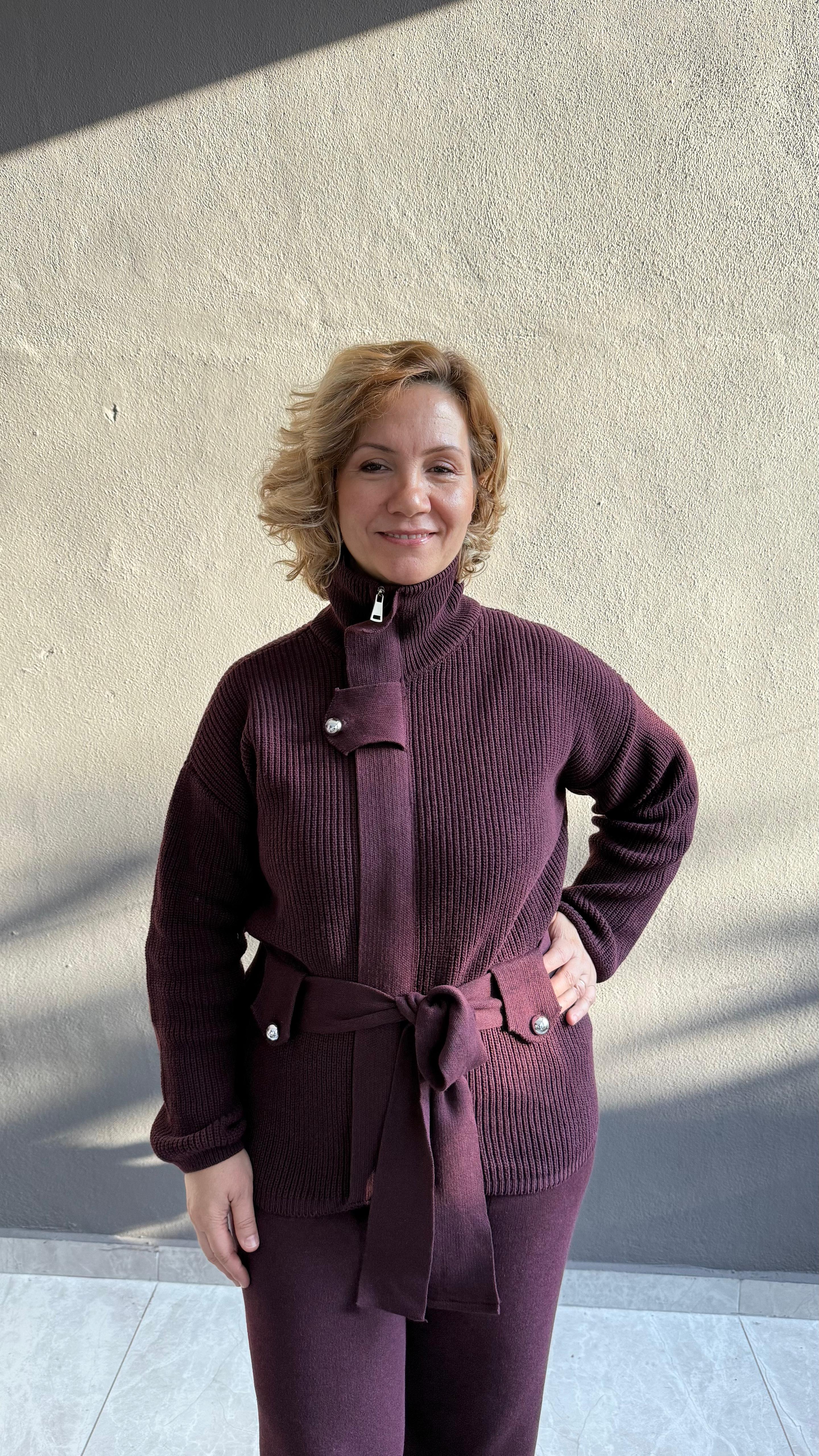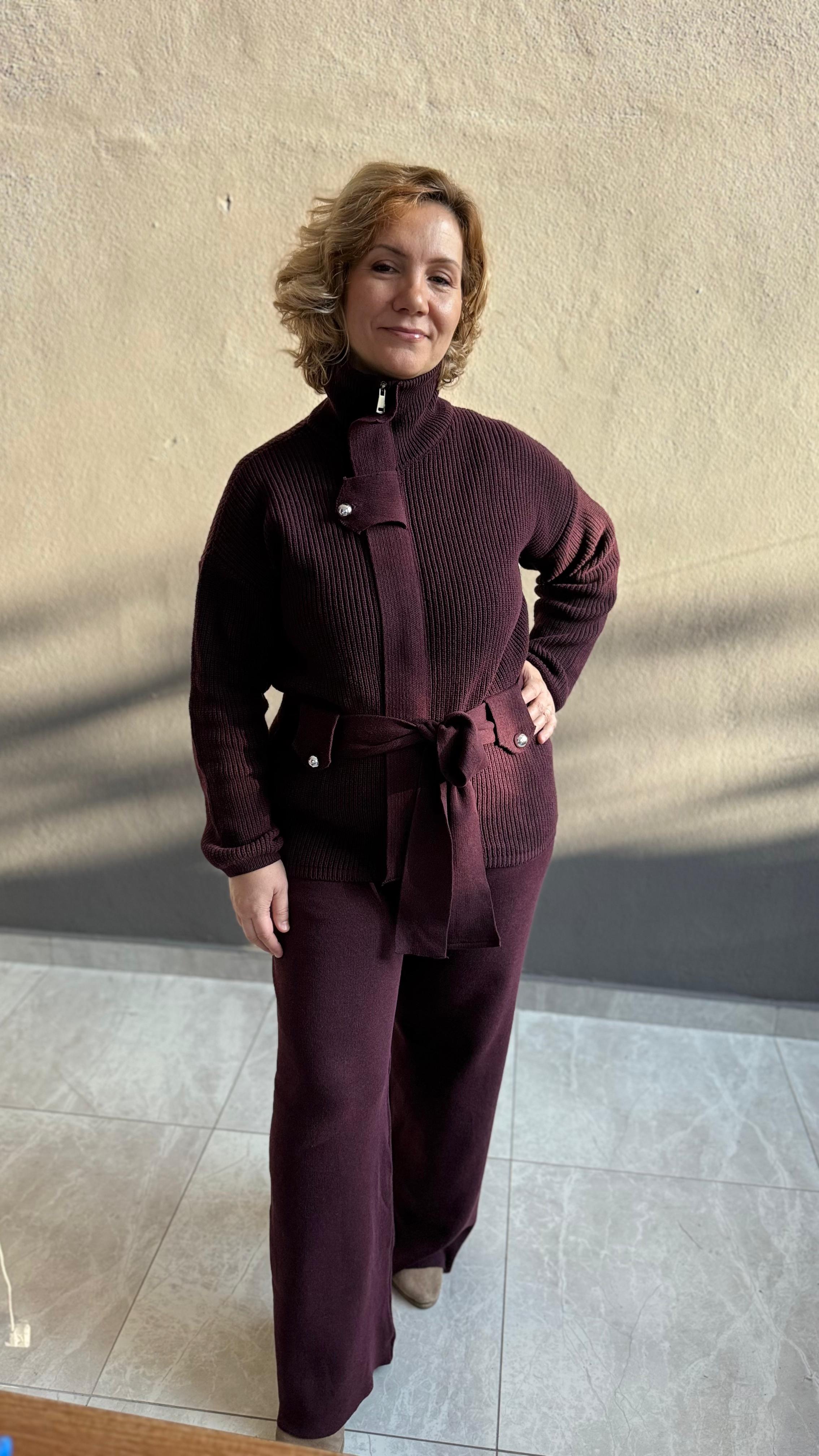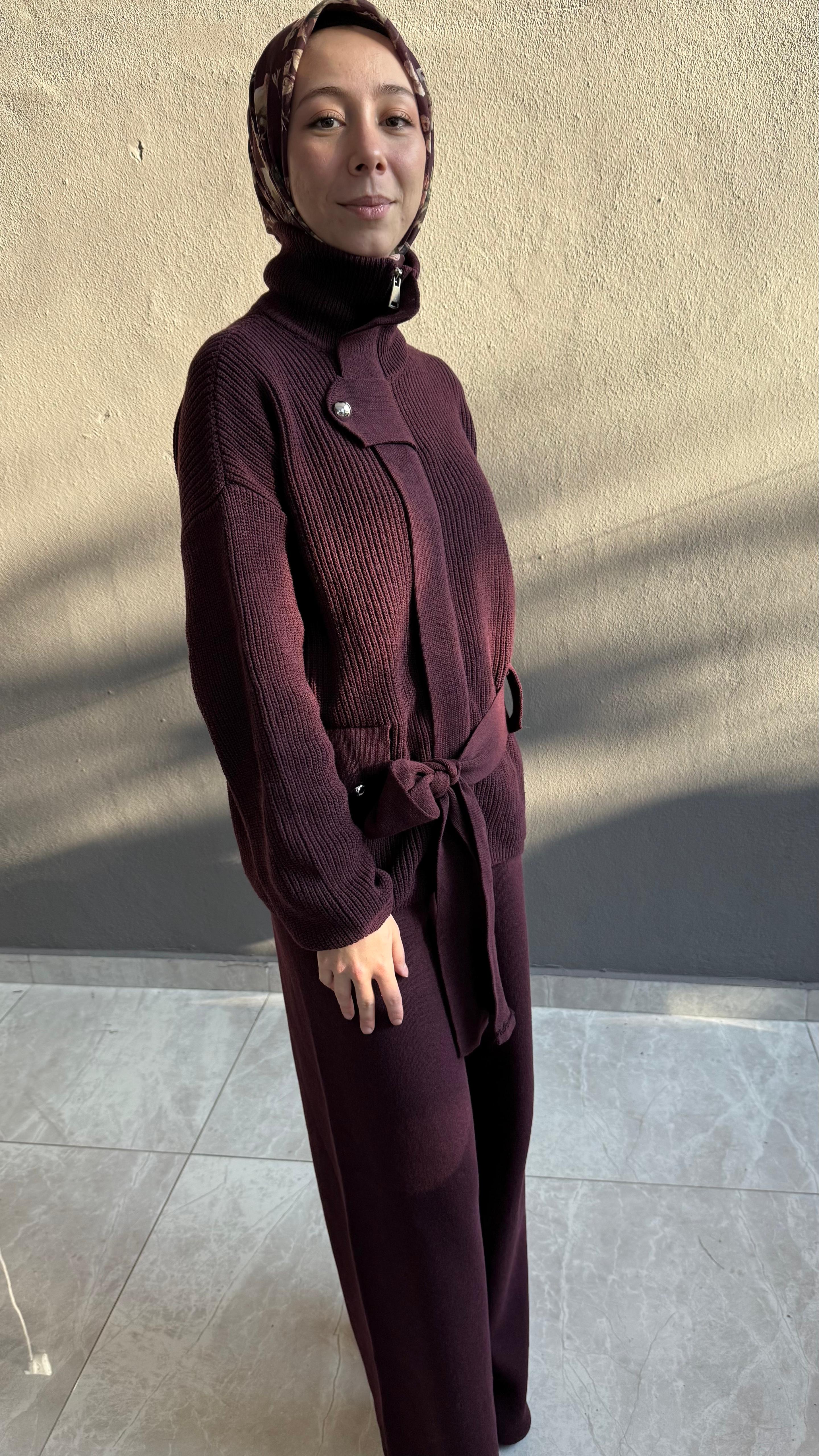 Premium triko kumaşıyla tasarlanan bu bordo triko takım, standart beden olup 36–44 beden aralığına uyumludur. Esnek ve tok dokusu sayesinde vücuda rahatça uyum sağlar, potluk yapmadan şık bir duruş sunar.