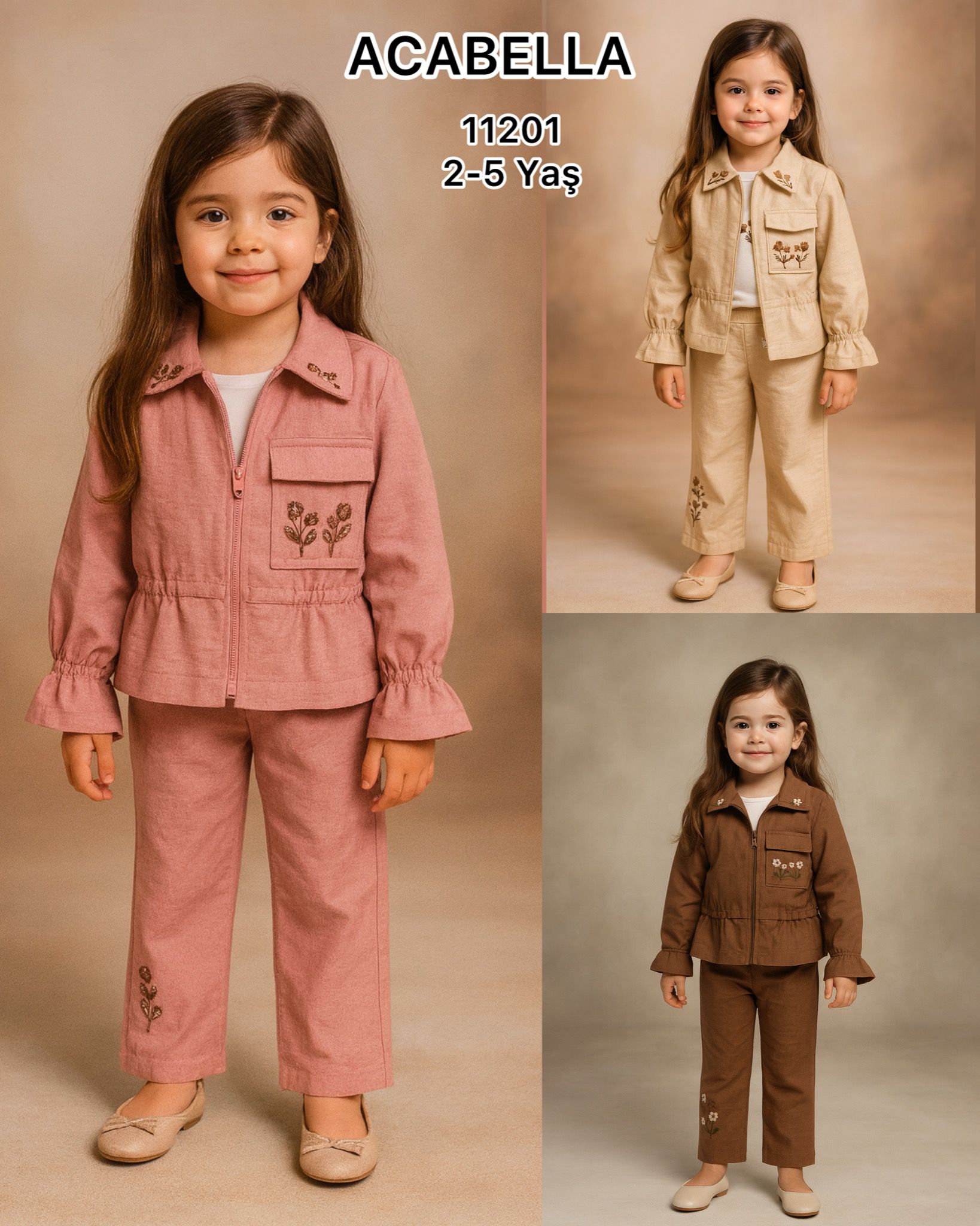 Cupra kumaş üstüne yakada ceplerde ve pantolon paçasında nakış işleme.